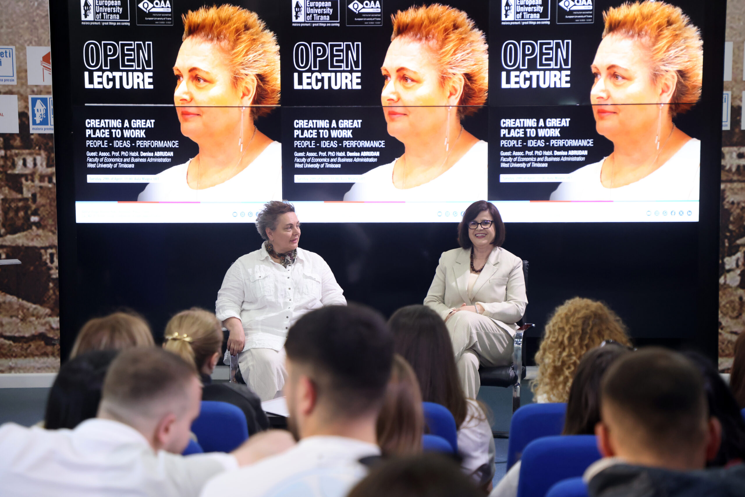 Dekania e Fakultetit të Shkencave Humane, Edukimit dhe Arteve Liberale, Prof. Dr. Belina Budini tregoi për studentët se kolegen shqiptare e takoi gjatë një vizite studimore në Harvard, ku mbajti një leksion në Departamentin e Letërsisë së Krahasuar. E inspiruar nga puna dhe rrugëtimi i saj, Budini e ftoi për të ndarë në auditorin e UET eksperiencën e saj akademike, punën si menaxhere programi, por edhe për të dhënë këshilla për çdo të ri që ka synim të studiojë në një universitet amerikan. Vizita e saj ishte edhe në kuadër të bashkëpunimit për projektin READ (Research Expertise from Albanian Diaspora), në partneritet me Albanian American Development Foundation (AADF).
